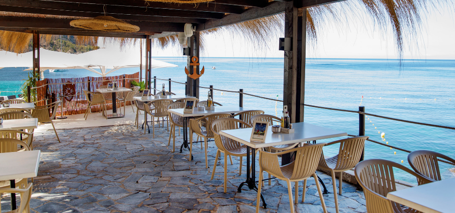 Gäste können sich auf Sonnenliegen, in balinesischen Betten oder auch am kristallklaren Meer entspannen und mit Cocktails und Tapas verwöhnen lassen.