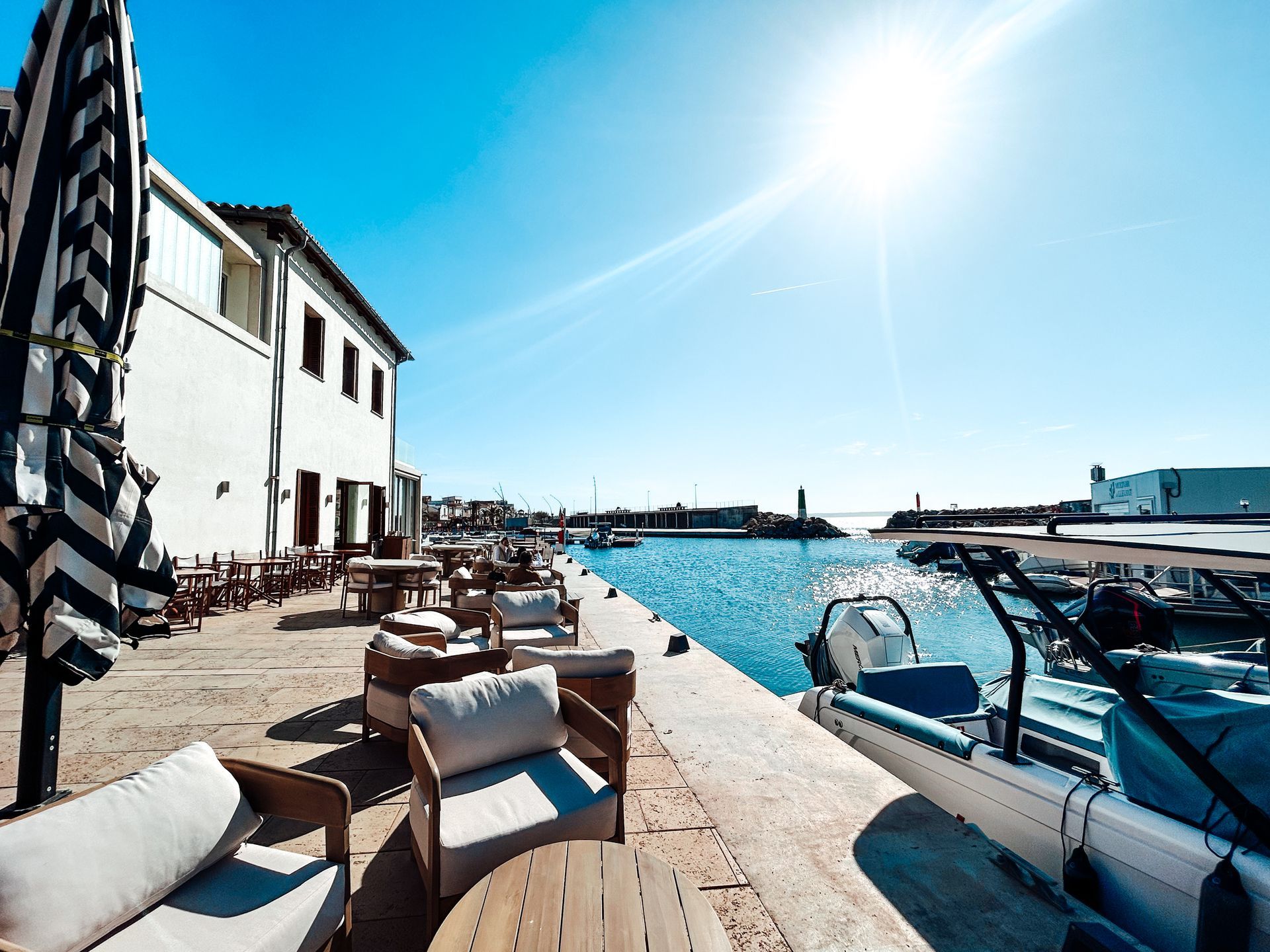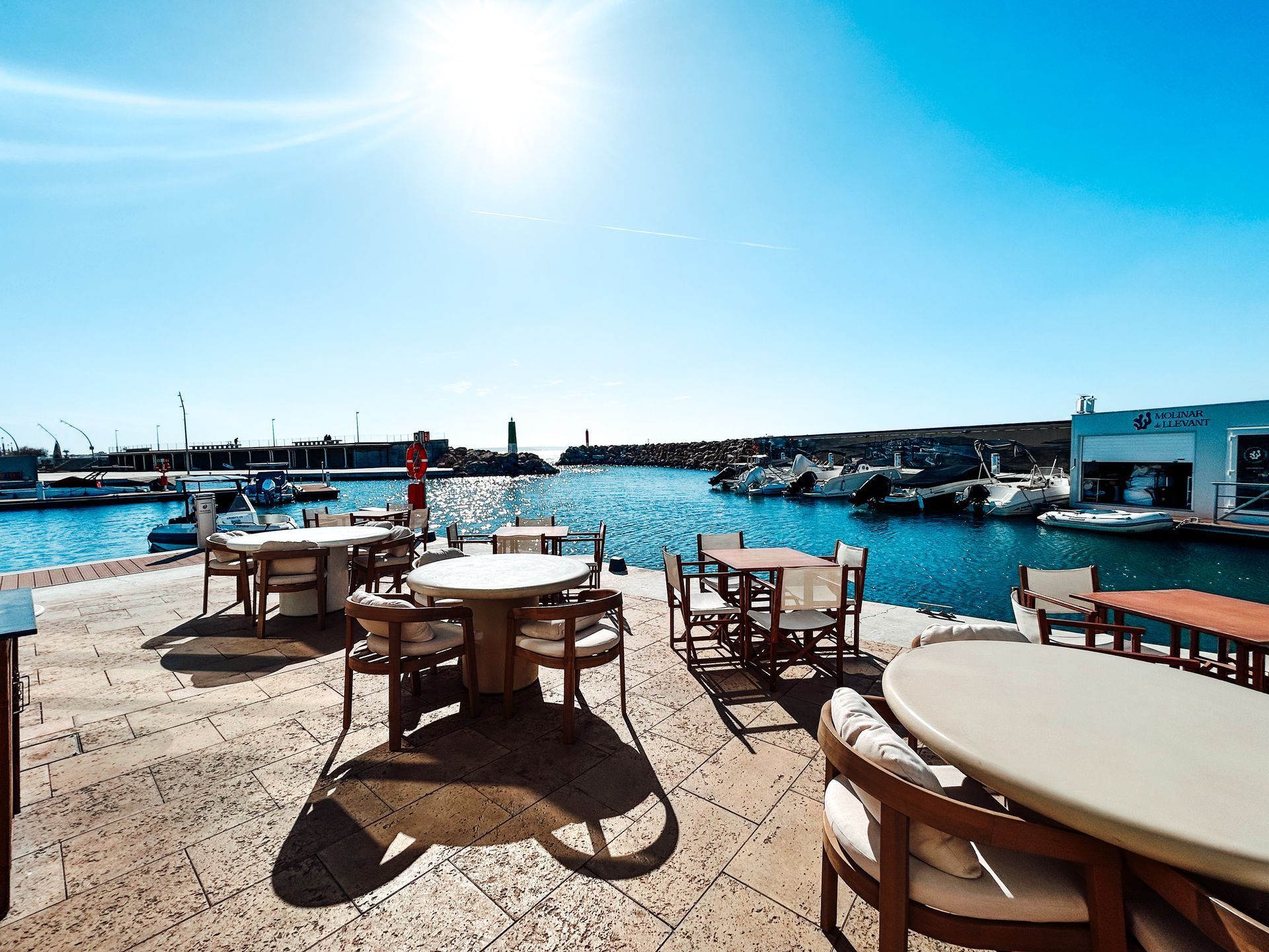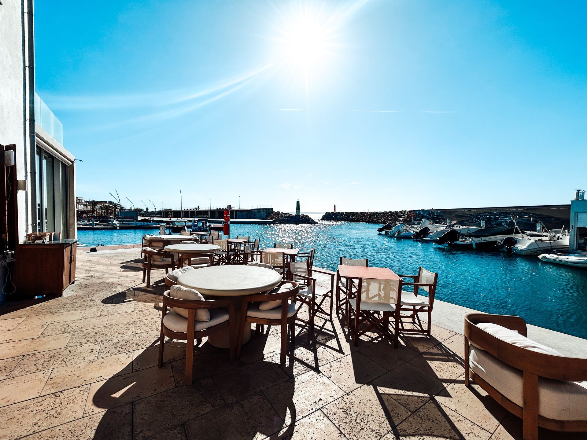 Welcome to Marina Luz Beach Club – boasting a stunning location overlooking the sparkling sea. The combination of a stylish interior and spacious outdoor areas is particularly appealing, allowing you to relax indoors or enjoy the fresh sea air, depending on your mood. The terrace offers breathtaking views that perfectly capture the atmosphere of sun, sea, and Mediterranean ease. With flexible capacity, the venue provides the ideal setting for a variety of events: up to 80 guests indoors, 60-70 seated outdoors. For standing receptions and open-air events, the spacious terrace can accommodate up to 120 people.