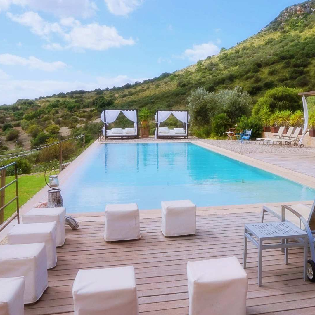 Zusätzlich laden der großzügige Pool mit einer Länge von 18 Metern und die Lounge im Freien zum Schwimmen und Entspannen ein.