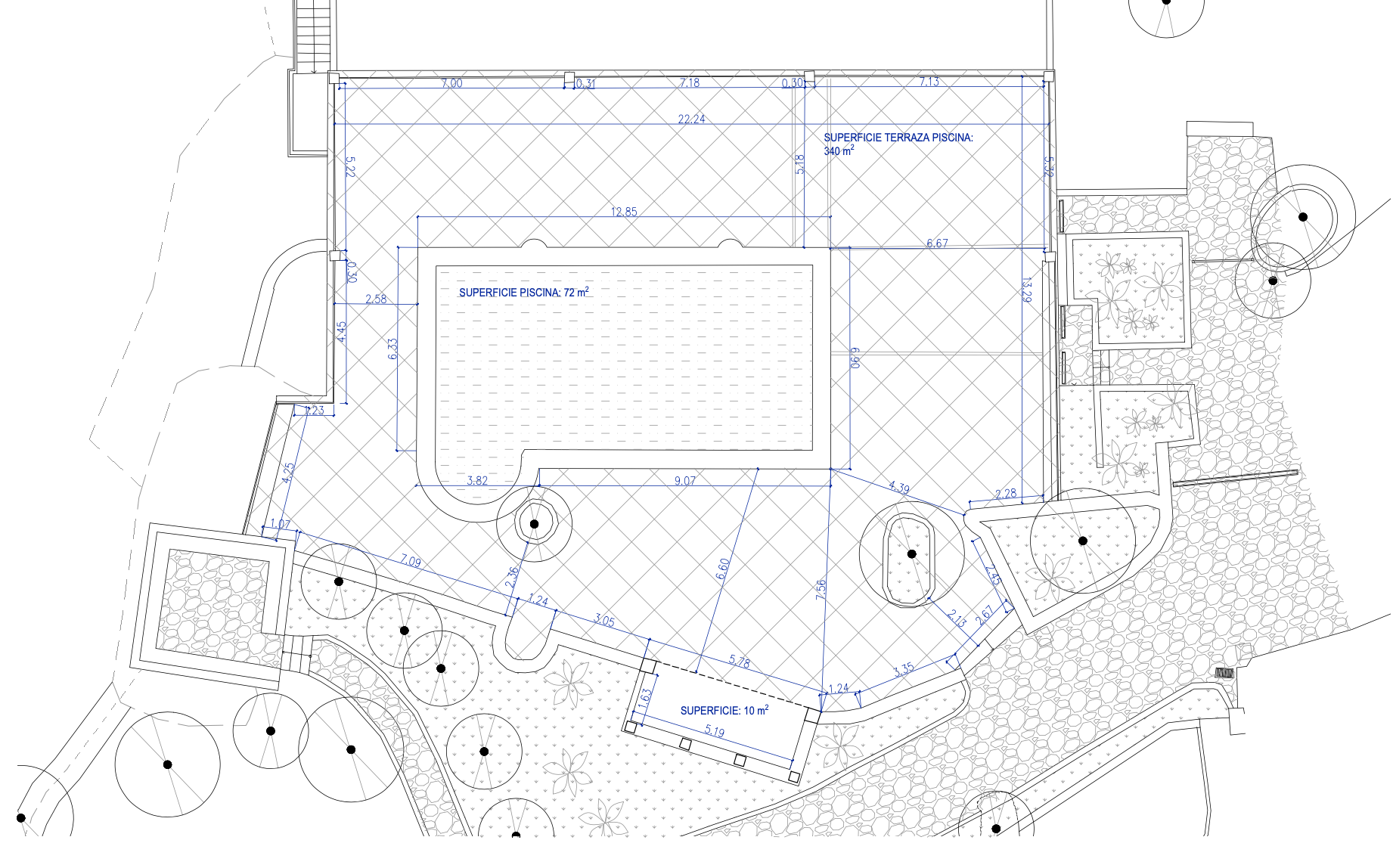 Terrassenfläche: 18m x 5m (Zementterrasse) + 12m x 5m (Rasenterrasse)