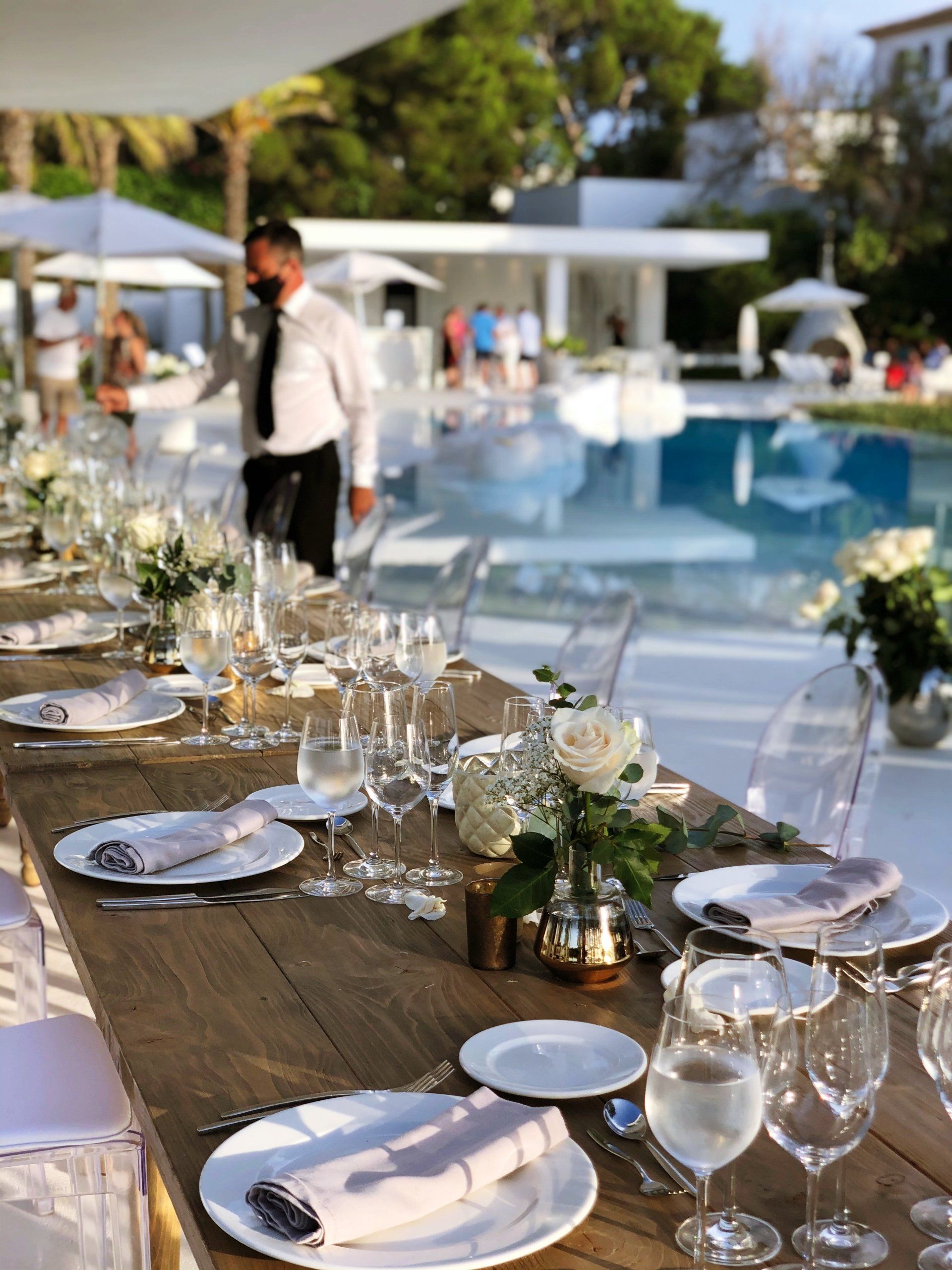Das absolute Highlight ist dennoch der Außenbereich mit einem Infinity Lagunenpool mit mehr als 25 Metern. Der Felsebwasserfa bietet den perfekten Ort zur Entspannung und die überdachte Außenlounge mit Bar und Gastrogrill das passende BBQ. Neben dem direkten Zugang zum Meer, verfügt dieser Traum in weiß auch noch über eine Anlegestelle für Yachten mit bis zu 25 Meter Länge. Mit mehreren Chill-out Terrassen, einer gepflegten Gartenanlage und auch noch einem Kinderspielplatz, wird hier keinem Gast so schnell langweilig.