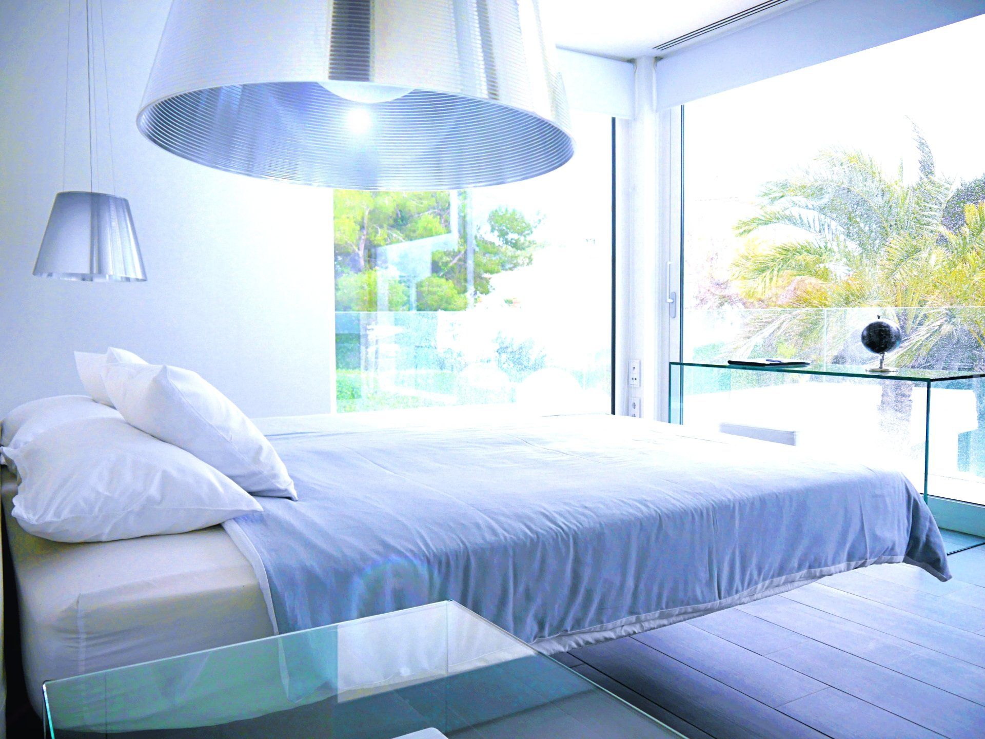 Insgesamt verfügt diese Villa über 12 Schlafplätze die aus 5 Doppelzimmern und einer optional buchbaren Master Suite bestehen. Jedes Zimmer hat unter anderem eine Klimaanlage. Fußbodenheizung, Bad en suite, Balkon und eine 5-Meter Fensterfront auf die Bucht und den Lagunenpool oder das Meer. Die Master Suite besteht auch noch aus einer in den Boden eingelassenen XXL Badewanne, einem 180ª Meerblick, einem Flatscreen SAT TV (auf Wunsch) und einem Solon Soundsystem. Schöner und entspannter kann man gar nicht übernachten!