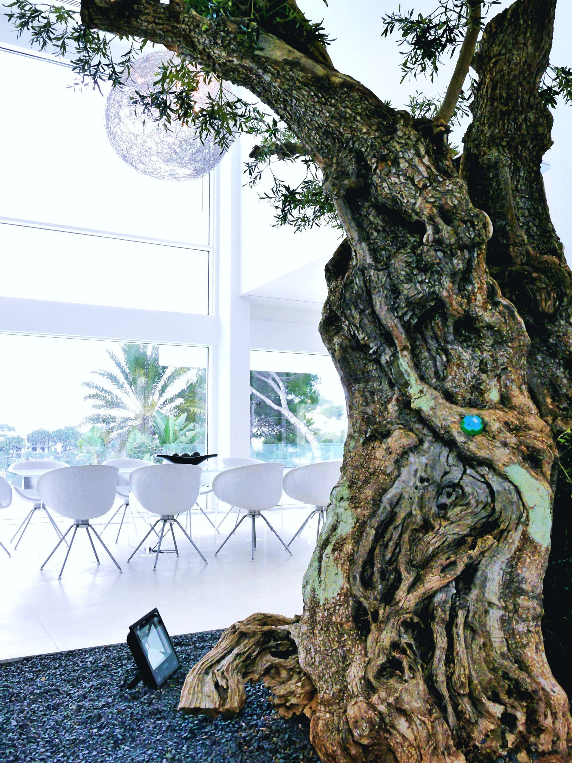 Der Wohn- und Essbereich ist mit einer Bar- und Showküche mit Weinkühlschränken ausgestattet. Außerdem verfügt es über eine komplett ausgestattete Service Küche und einem Esstisch für 10 Personen direkt unter dem Olivenbaum. Ob in kleiner oder großer Runde, hier können leckere Speisen verzehrt werden. Des weiteren bietet der große Wohnbereich mit Kamin oder die Leinwand für 3D Kino das perfekte Entertainment um einen Abend ruhig ausklingen zulassen.