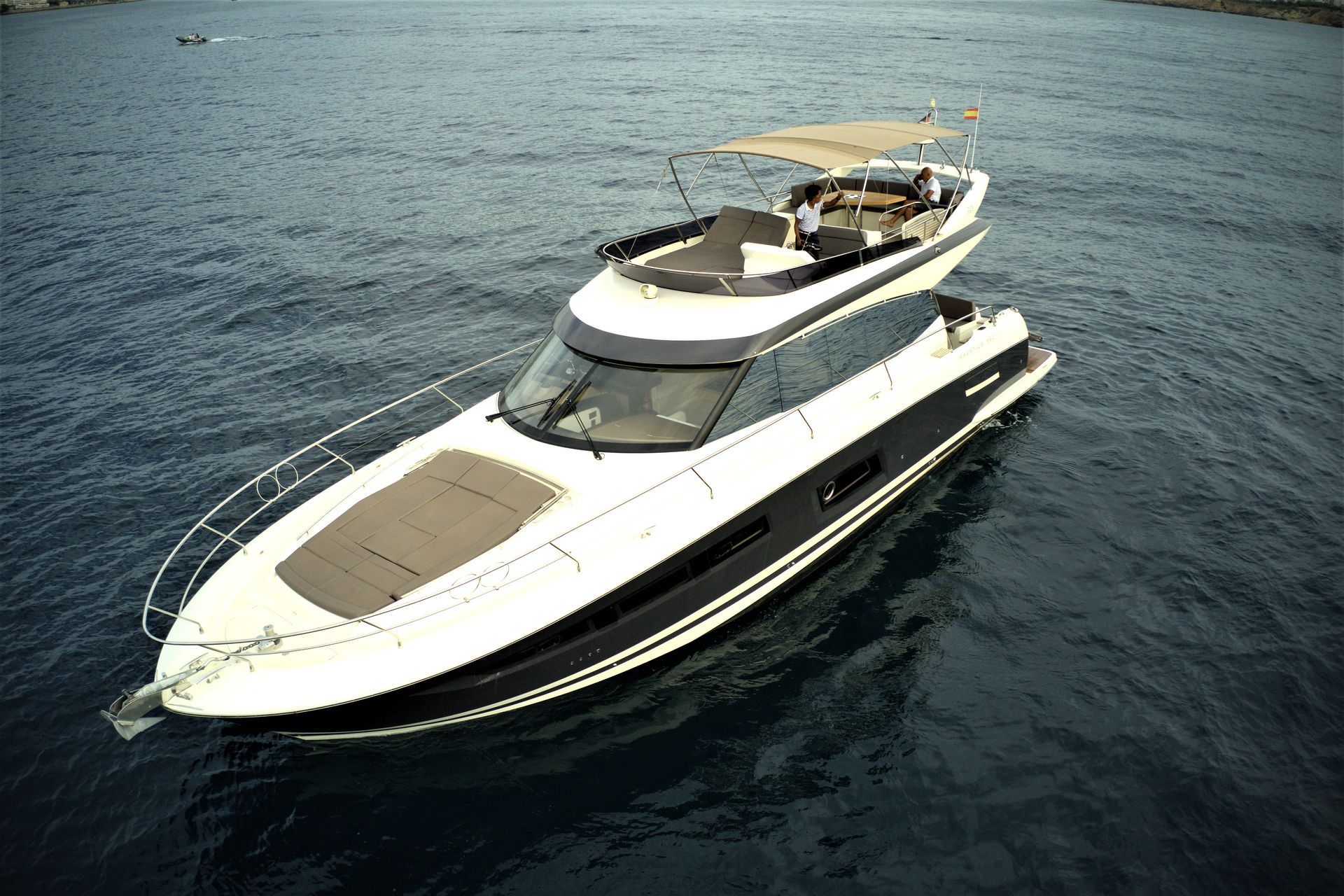 Yacht De Familiar bietet eine große und sehr komfortable Sonnenliegefläche am Bug und eine exklusive Flybridge.