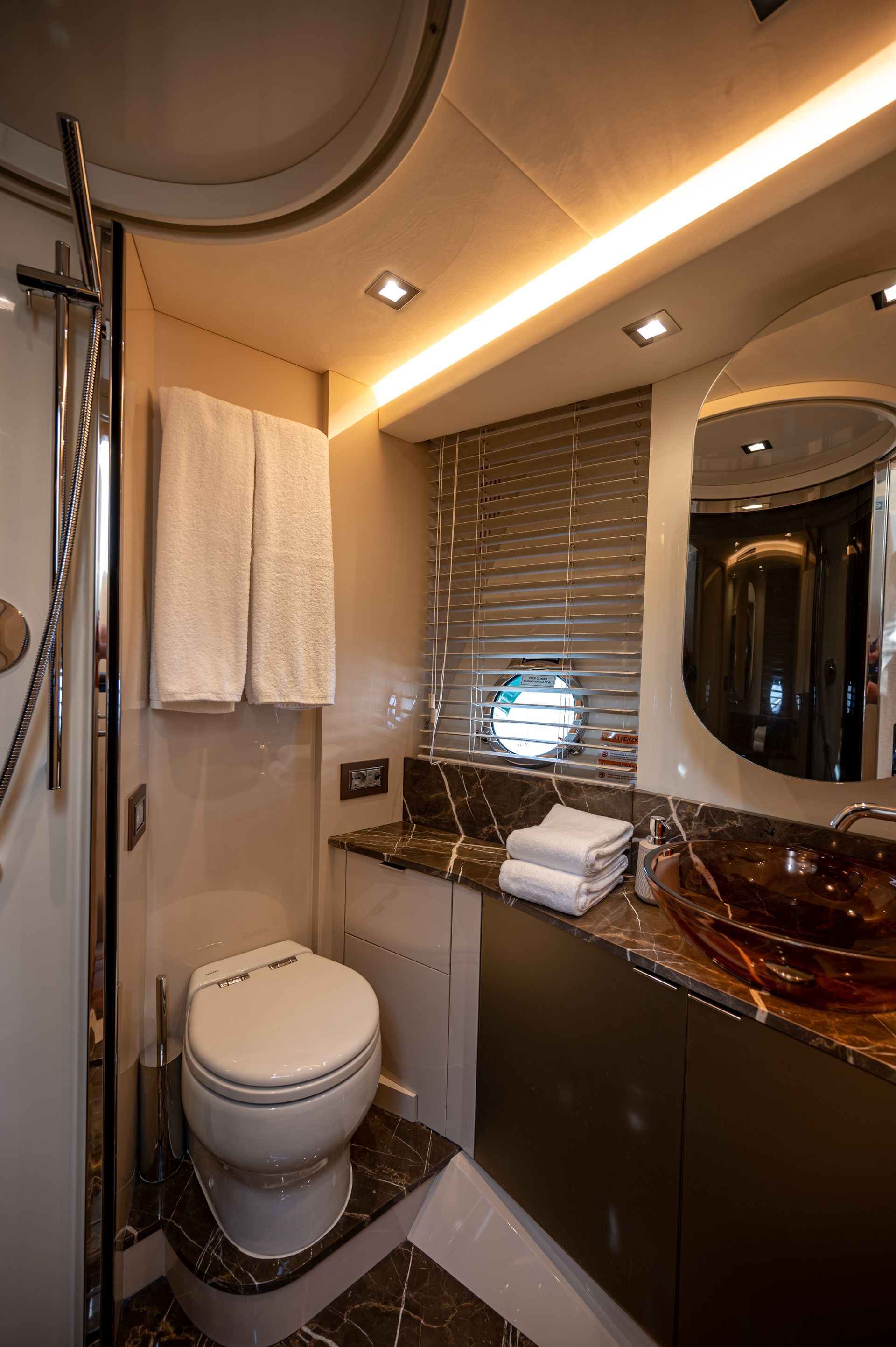 Die Yacht bietet zudem ein perfektes Layout und ein beeindruckend luxuriöses Interieur, das mit Naturstein, italienischem Leder und vielen anderen hochwertigen Materialien ausgestattet ist.